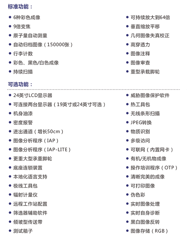 产品简介:XIS-6545是满足机场、政府、邮局和商业应用中进行小包裹扫描检查理想之选。系统采用高分辨率的X射线检测仪,可提升检测灵敏度并获得更好的图象显象效果。人体工程学设计使操作具有舒适性和简易性的特点。允许使用人